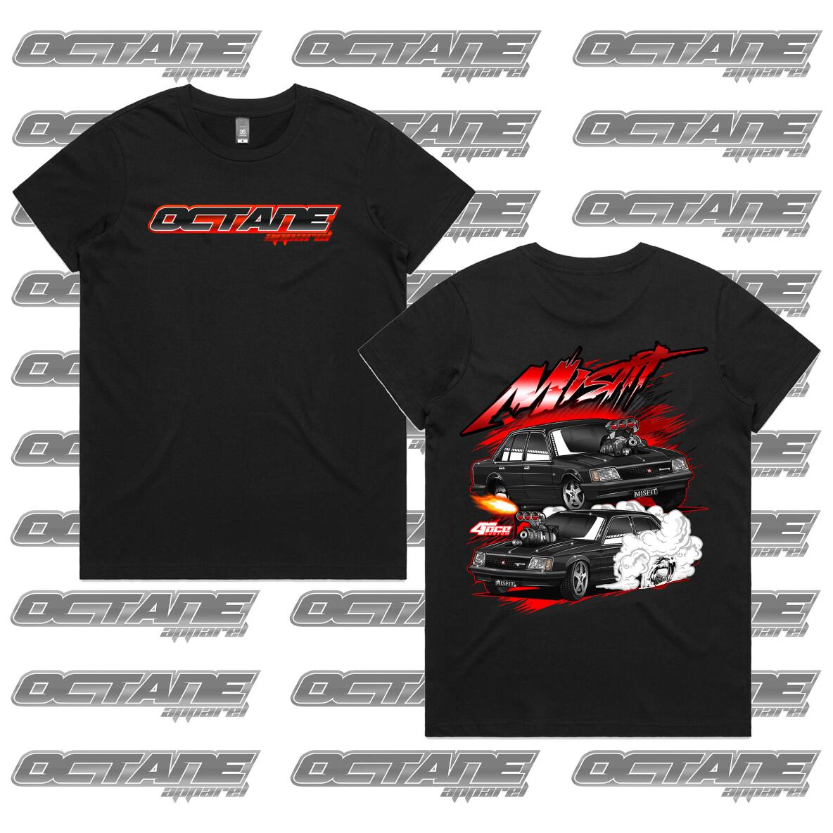 Introducing the Misfit car design from Octane Apparel, the perfect addition to any burnout enthusiast's wardrobe.